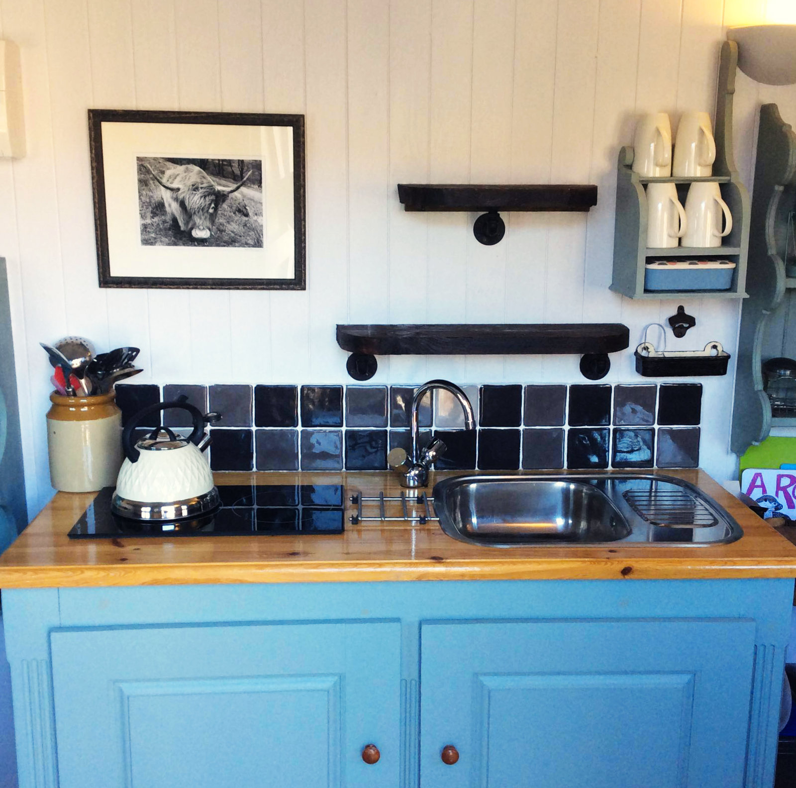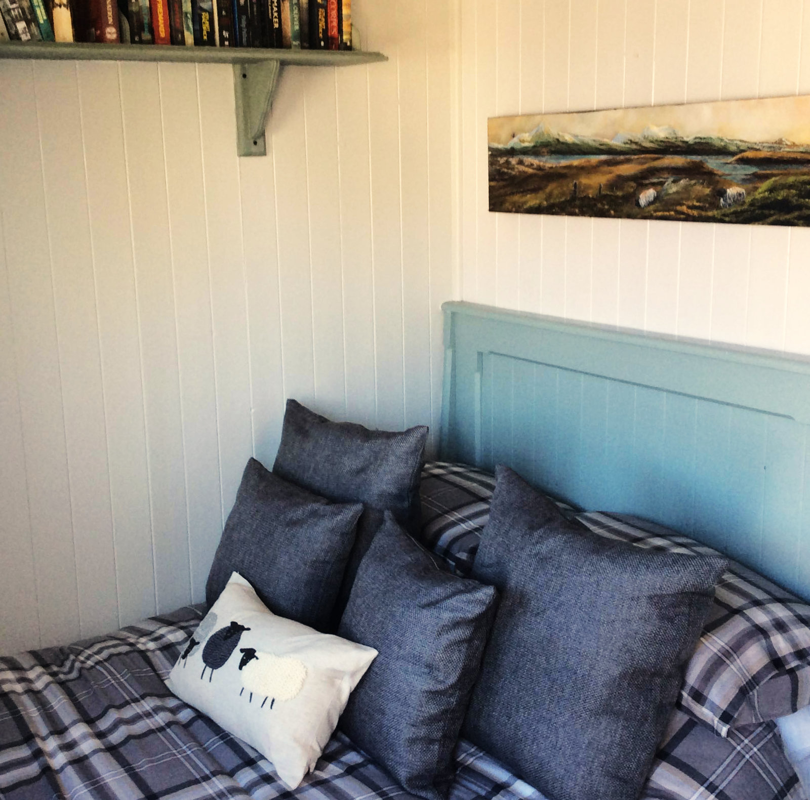 Our Shepherd’s hut is comfortable and well appointed. Whether you’ve had a busy day exploring the island, or an easy one, reading a book and dozing on the grass, Bothan a’ Chìobair’s views of the sea and cosy interior will help you relax and unwind.